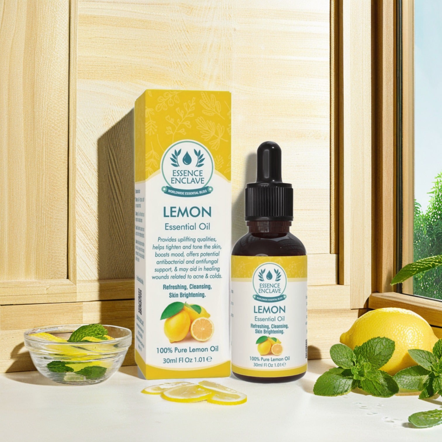 Essence-Enclave Lemon Essential Oil is derived from cold-pressed lemon peels, ensuring maximum potency and purity. Known for its antibacterial, antifungal, and detoxifying properties, this oil serves as a powerful natural remedy for skincare, respiratory health, natural cleaning, and mood enhancement.